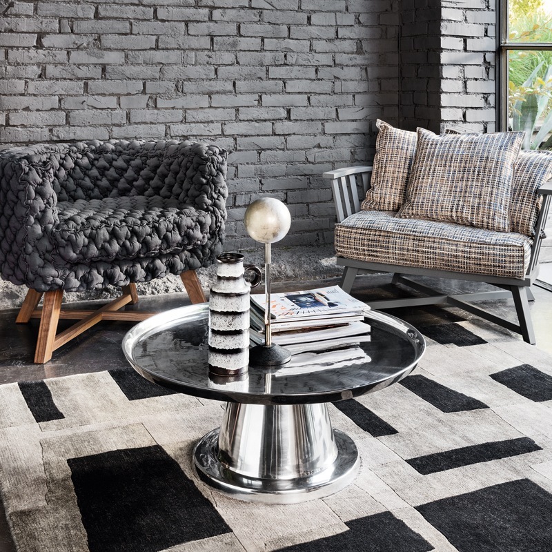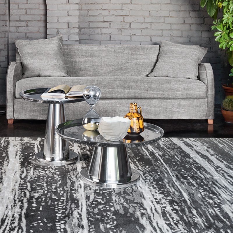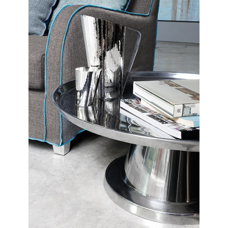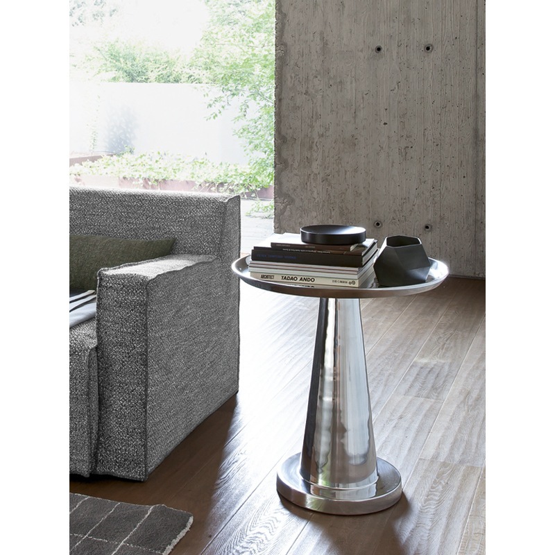 Fuß und Tischplatte aus Gussaluminium, poliert