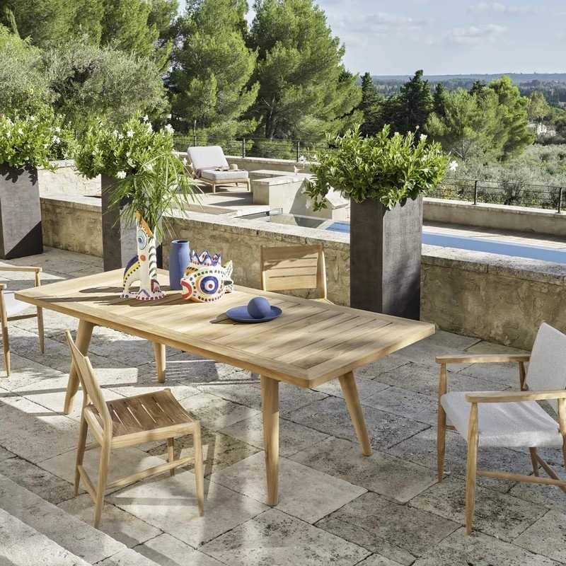 Das massive Teakholz aller Gervasoni Produkte stammt aus Anbaugebieten in Indonesien. Das Material wird nicht behandelt, denn der natürliche Ölgehalt des Holzes sorgt für Wasserundurchlässigkeit und Resistenz gegen Insekten und Parasiten. Auch wenn es lange der Witterung ausgesetzt bleibt, wird die Stabilität des Holzes nicht beeinträchtigt. Durch Luft, Licht und Witterungseinflüsse nimmt das Teakholz mit der Zeit einen grauen Farbton an.